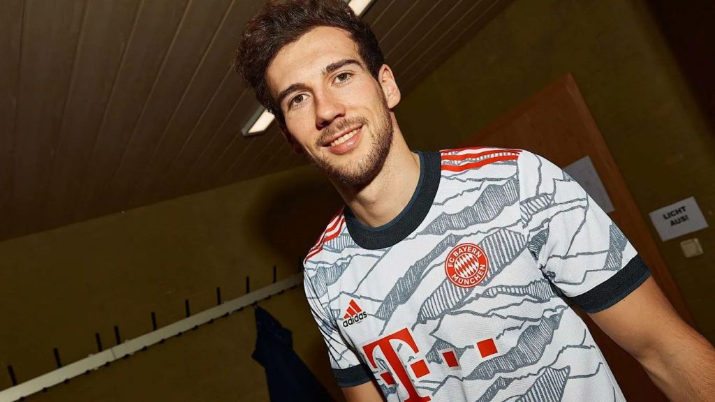 FC Bayern a adidas dnes predstavili dizajn dresov pre zápasy Ligy majstrov sezóny 2021/2022. Nový dres Ligy majstrov bol inšpirovaný horskou panorámou oblasti Mníchova. V bielo-modrej farbe je do inovatívneho dizajnu začlenený štylizovaný horský svet, ktorý symbolizuje väzby na domov a korene nemeckých šampiónov, ako aj jeho nároky vždy mieriť na najvyššie vrcholy. Na úpätí hôr čerpá FC Bayern sily, než by mal ísť strmo hore. Bavorsko je tiež spôsob života, životný štýl a nový dres ho prenáša na futbalové ihriská po celej Európe. Novým dresom teda dominuje modro-biela kombinácia doplnená červenou farbou. Prednej strane dominujú červené tradičné logá. Červené logo adidas lemované bielou farbou s modrým nápisom adidas, červené logo hlavného sponzora spoločnosti Telekom rovnako lemované bielou farbou a červené logo nášho klubu. Dresy sú vyrobené technológiou HEAT.RDY, ktorého znak nájdeme na prednej strane. Rukávy sú ukončené širokým tmavomodrým a následne tenším svetlomodrým pruhom. Tradičné pruhy firmy adidas v červenej farbe sú opäť iba na pleciach. Tričkový golier je rovnako ako rukávy tvorený širokým tmavomodrým a následne tenším svetlomodrým pruhom. Na zadnej strane je pod golierom červený nápis Mia san mia. Do časti zadnej strany dresu zasahuje prednej strane dominujúca horská panoráma oblasti Mníchova. Ďalej tam nájdeme v hornej časti modrou farbou meno hráča a červenou farbou číslo hráča s logom klubu, ktoré je opäť graficky tvorené tak, aby budilo 3D dojem. Kolekciu dopĺňajú trenírky bielej farby, ktoré majú po bokoch červené pruhy adidas. Na pravej nohe vpredu je červené logo klubu a na ľavej nohe vpredu červené logo firmy adidas. Trenírky sú vyrobené technológiu adidas AEROREADY. Štucniam tiež dominuje horská panoráma oblasti Mníchova. Doplnená je o červené pruhy pruhy adidas, vpredu je červený nápis BAYERN a vzadu červené logo adidas. Päta a špička sú sivo-modrej farby.